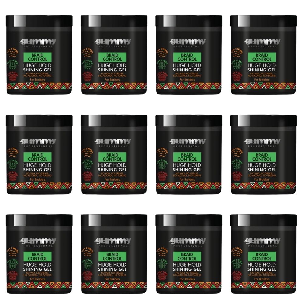 Gummy Braid Control Gel Huge Hold 16.9 oz is a specially designed gel for braiding and styling, providing ultra-strong hold. It smooths hair, prevents frizz, and ensures long-lasting styles. The formula delivers a natural shine without a sticky feel, making it perfect for professional use.
