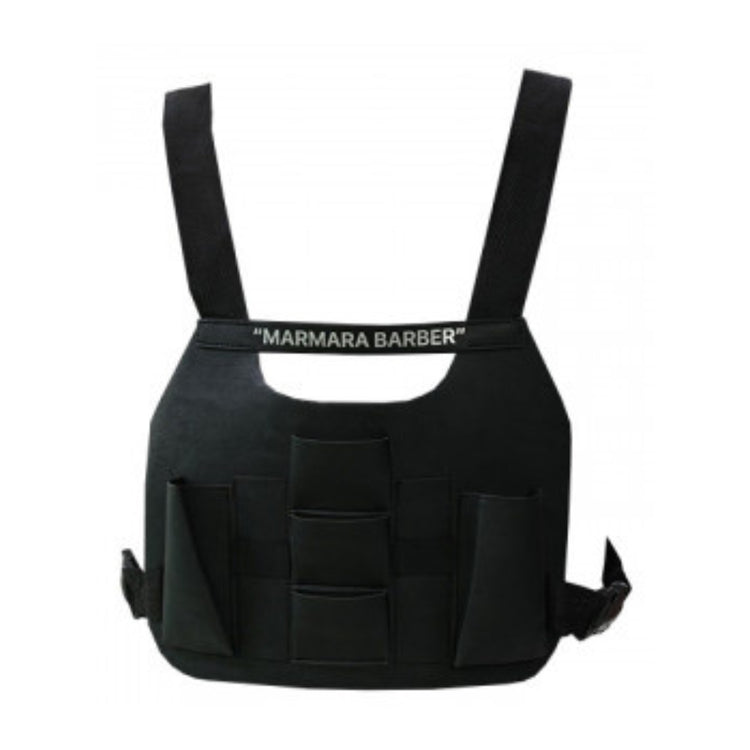 Marmara Barber Apron Shield Model is designed to help barbers work faster and more efficiently by keeping essential tools within easy reach during shaving and haircuts.