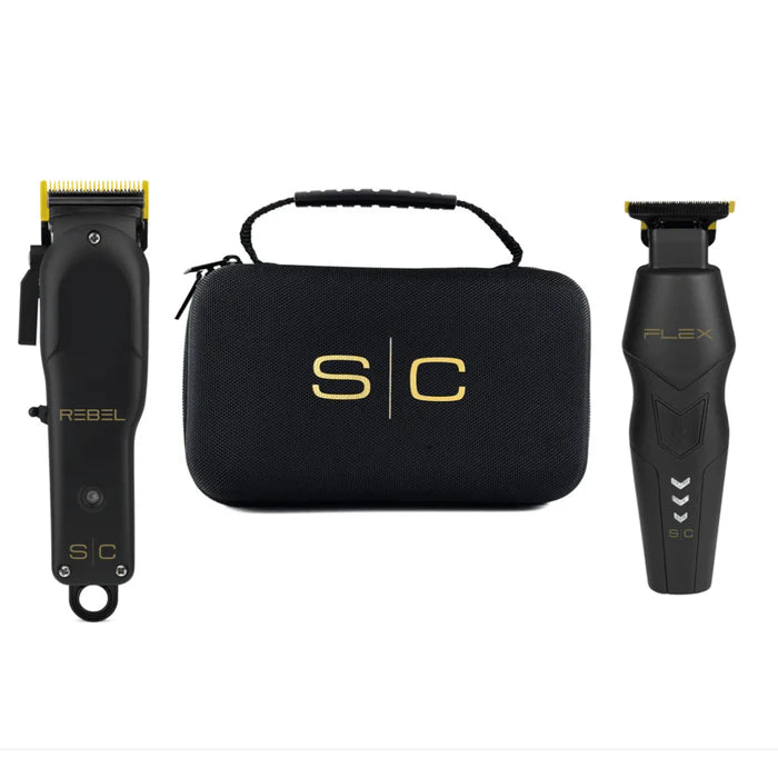 One of StyleCraft’s most powerful clippers, the Rebel is paired with the compact Flex Trimmer inside a portable travel case—making this the perfect combo for barbers and stylists on the go or those just building their kit.