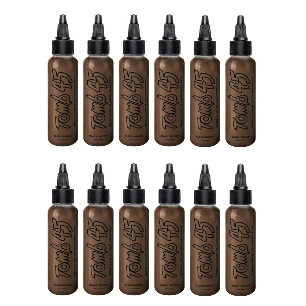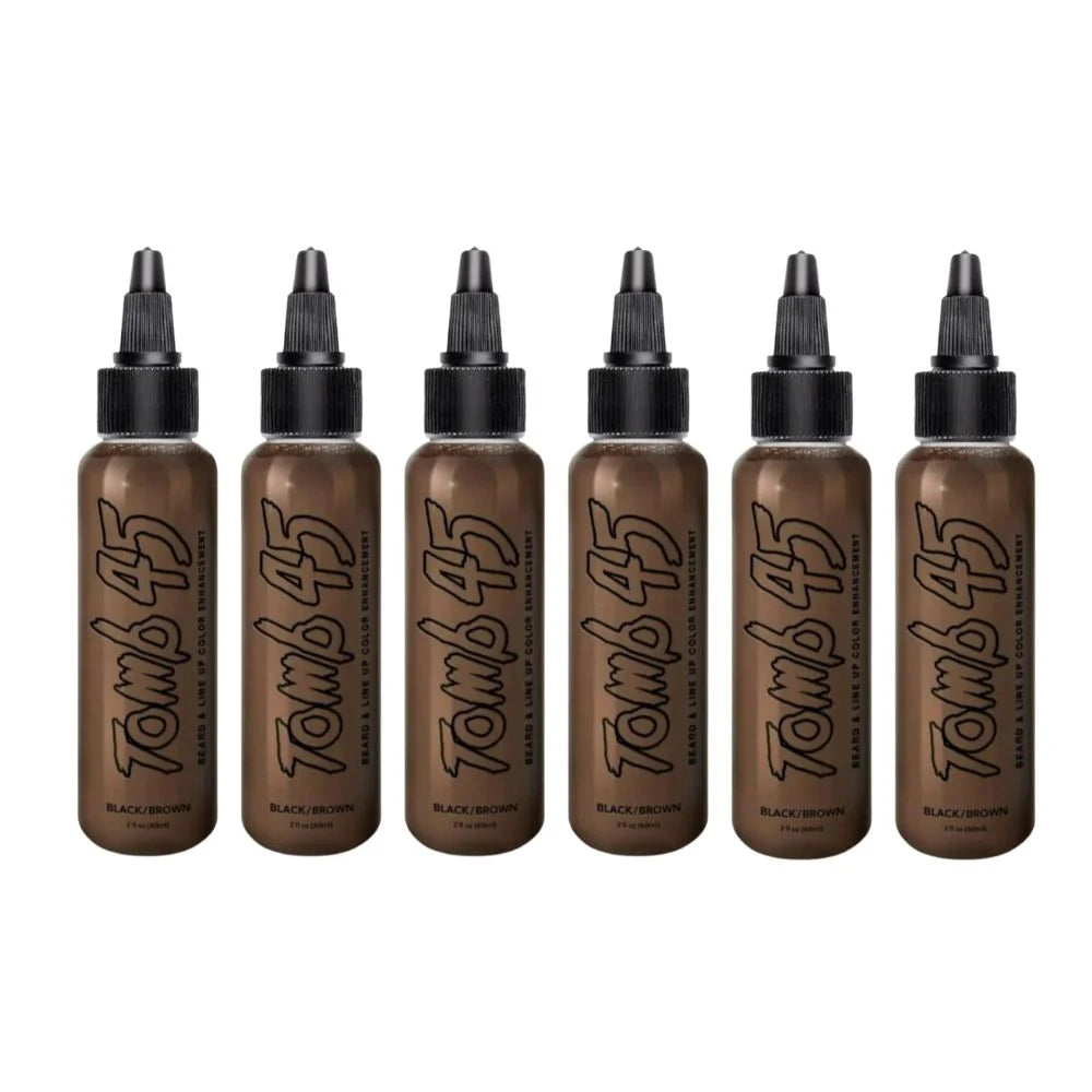 The only legal beard and lineup enhancement product designed to be used with Tomb 45 XL Airbrush system. Designed to stain the skin, you wont have to worry about water rinsing it off. This product is not diluted and is ready to use right out of the bottle. A little goes a long way. 6-8 drops will cover a full service. Comes in Black/Brown